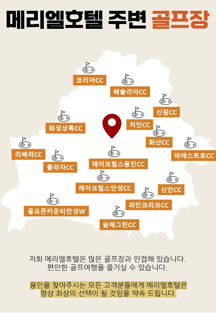 메리엘호텔은 태광CC, 수원CC, 한성CC 골프장과 인접해 있어